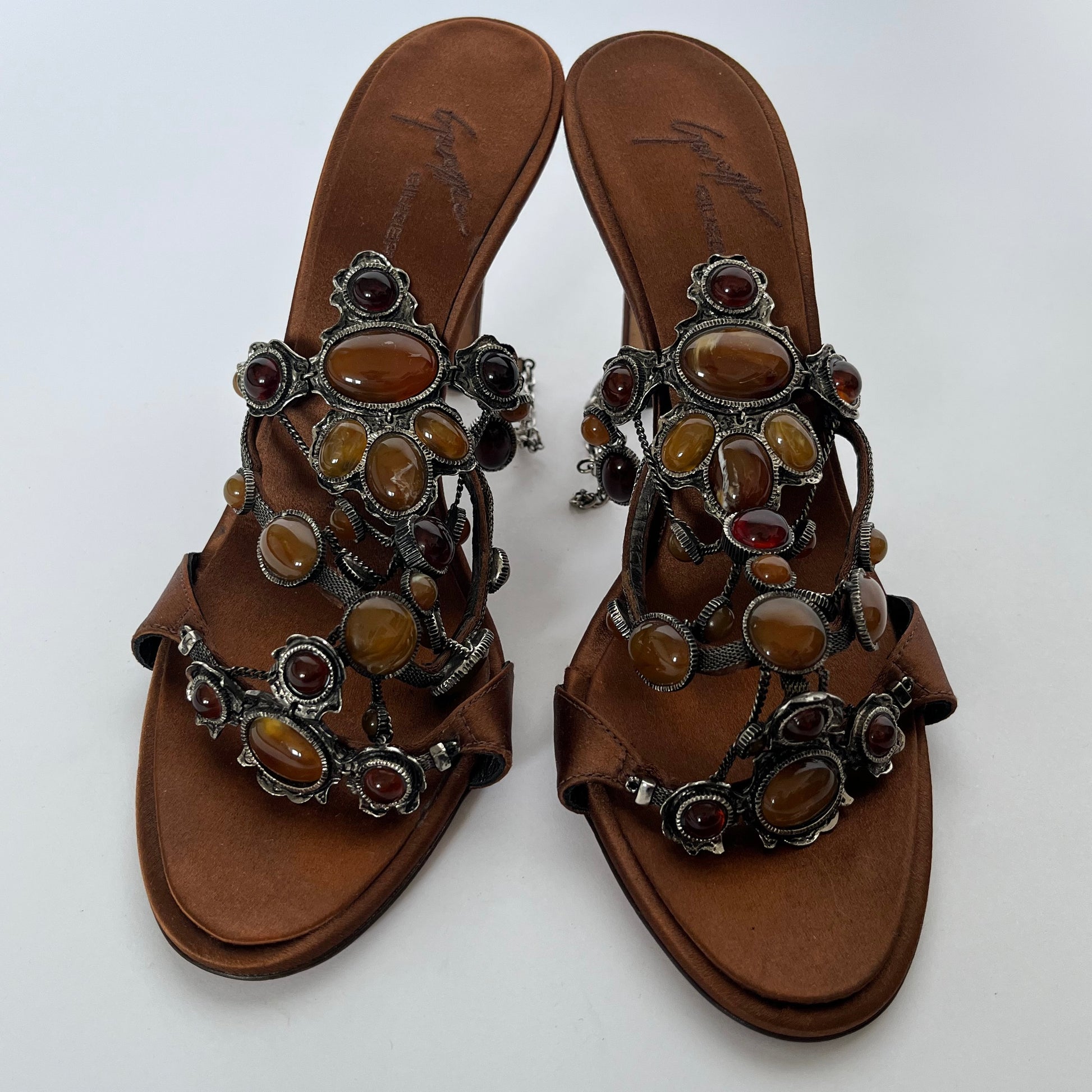 Item: Giuseppe Zanotti Satin Gemstone Heels Copper