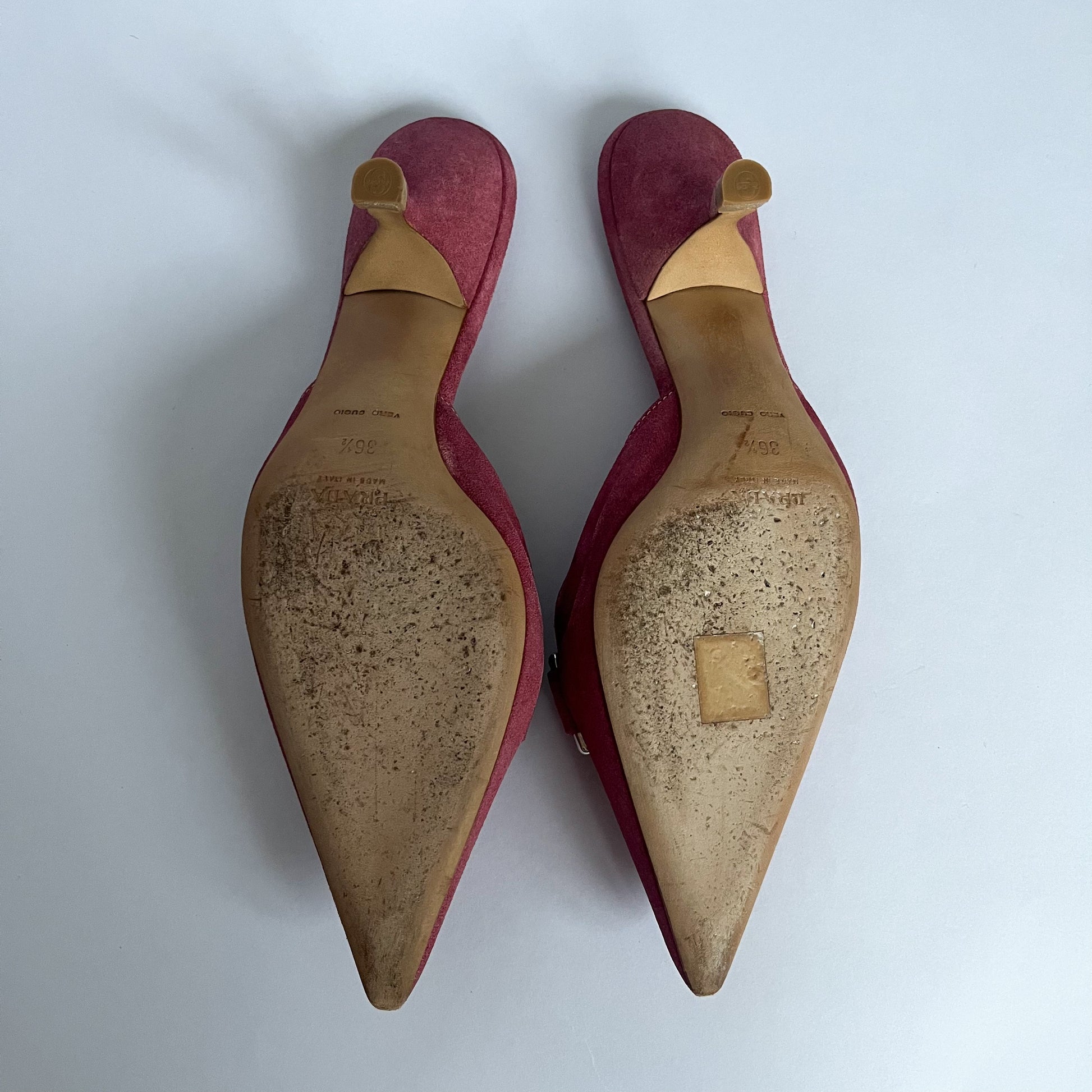 Prada Buckle Kitten Heels Suede Pink (36.5 EU)